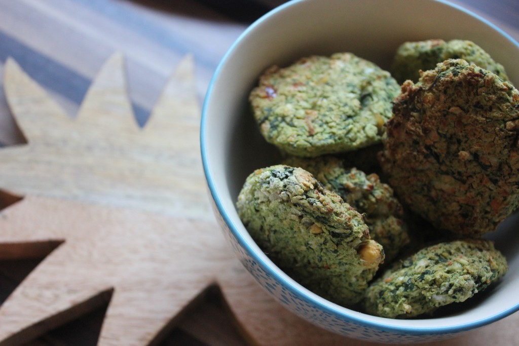 Start by pre-heating your grill and wilting your spinach. Prepare the spinach either by pouring boiling water on it in a colander or wilt down in a frying pan with a spray of olive oil or 1cal spray. You will then have to squeeze all of the water out of it by scrunching it into a ball. You won’t get it all out but try and get as much as you can so that your falafels aren’t too wet. Chop your onion finely and add to a food processor with your spinach, drained chickpeas, feta, flour and spices. Blitz until it forms a thick paste and then mush it all together! Form small patties, I like to make about 12 out of this mixture and place under the grill for 7-10 minutes or until as crispy as you like. Flip over and do the same thing until they’re nice and crispy on both sides. Leave to cool and then store in an air-tight container. They’ll stay crispy for a few days but they’re best eaten within 3 days.