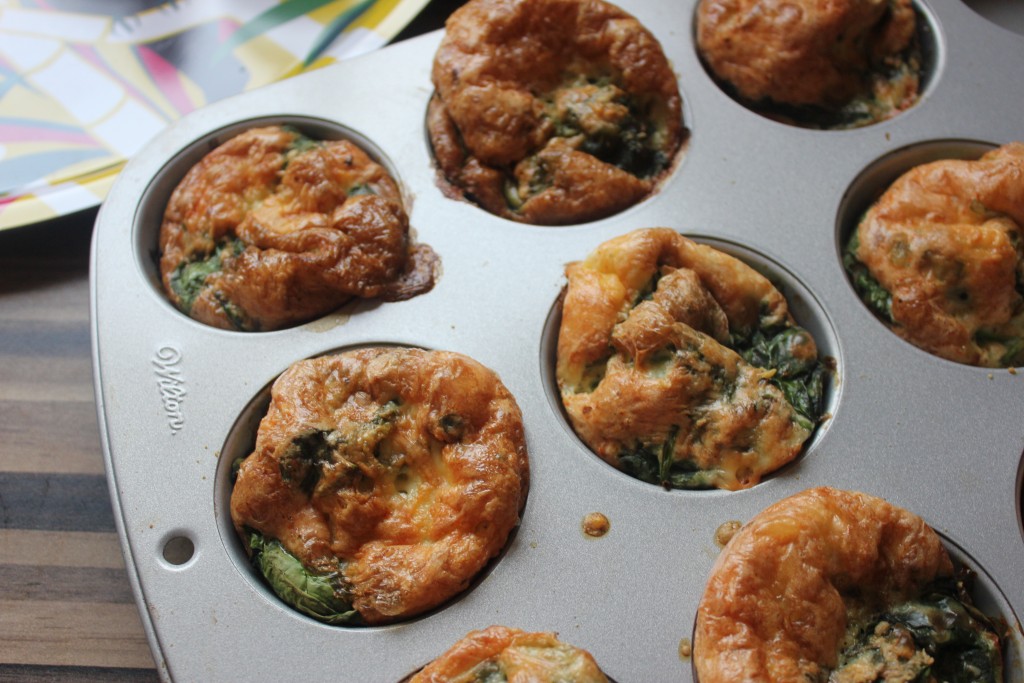 Egg muffins are an awesome snack to have on hand in the week, especially if you find yourself reaching for the biscuit tin or a quick slice of toast when hunger strikes. They take about 10 minutes to prep and 20 minutes to cook in the oven so they’re really quick and easy to make. These muffins are also seriously tasty and are really versatile. You can add whatever flavours that you like but these cheesy spinach versions are my favourite at the moment – they’re great for using up leftovers!