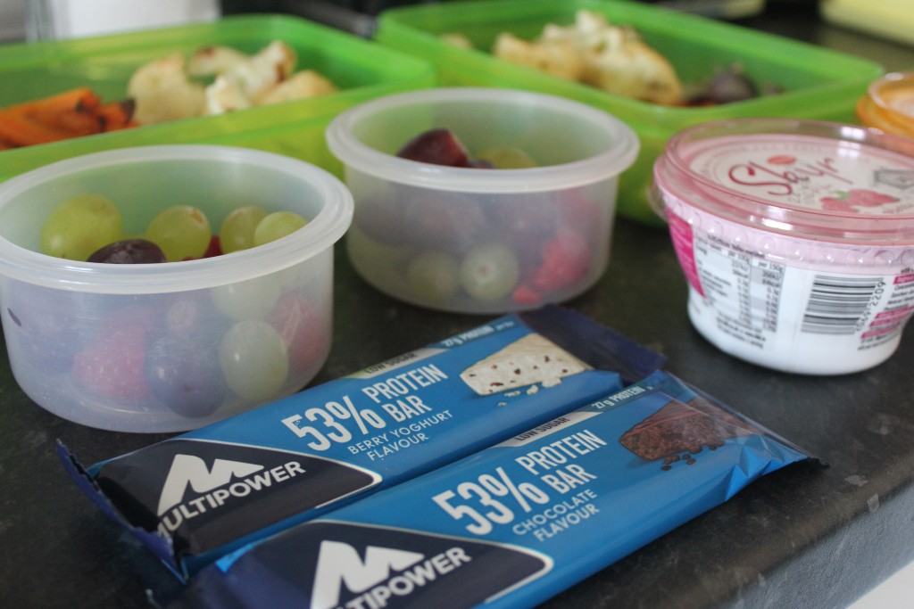 You should obviously eat three healthy and balanced meals a day but I also like to have 3 snacks too! Mid-morning I like to have a tea or coffee at work and a baked snack like my berry oat bars, a banana or something a bit more substantial like a protein bar. I really like the Multipower 53% protein bars because they’re a bit like chewier Milky Ways, they don’t taste all gross and protein-y at all like some do. My favourite is the white chocolate covered berry flavour and the cookies & cream flavour is also awesome. By having healthy snacks about you’re less likely to reach for the office biscuit jar or a sugary muffin on the coffee run.