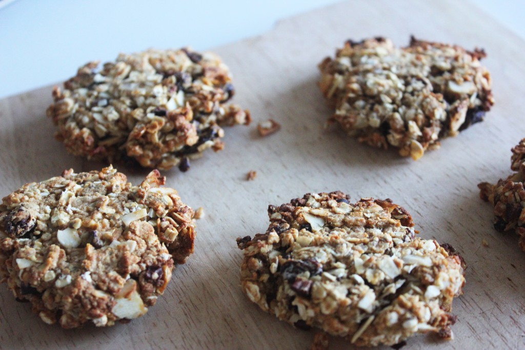 I made these little granola-y almond, raisin, and cacao cookies the other day and they’ve turned out quite nicely so I wanted to share them. They’re fairly clean apart from the plain flour that I used but you can always replace this with almond or coconut flour for a cleaner bake but it doesn’t bother me too much. They come in at just over 100 calories each and won’t give you a sugar spike like any old supermarket biscuit will so they’re great if you’re trying to eat a little healthier but still love a sweet treat.