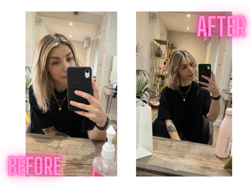 I had already gone slightly lighter from my faded brunette since lock down but I wasn’t loving my colour and I think I preferred to look a little bit more highlighted so I chatted to Zoe about the aim and said that I wanted to keep some of the natural roots I’d lovingly grown out in lockdown because I quite like a natural root with blonder ends and it makes you learn colour last a bit longer than highlights straight to the root – you don’t get a ‘grown out’ line.